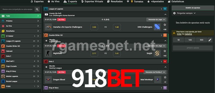O 918Bet oferece uma grande seleção de opções de apostas em e-sports com probabilidades competitivas